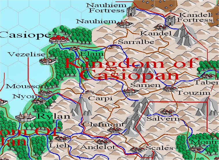 Casiopan's Army consists mainly of Heavy Infantry and Medium Infantry/Archer's, and is at present holding it's own against Rylan with some Aid from Relmandia and Balien. But if Major aid doesn't reach Casiopan soon from either Balien or Relmandia, the Armies of Rylan and it's puppet state Pavia will triumph. There are rumors that the Elven King of Eldanore is sending help to Casiopan in exchange for help to combat the growing threat of Fire Giants and other Evil Creatures raiding out of the Steamslayer Creche, also 5 Plains Windrider Tribes have offered help in exchange for Money and Goods.
